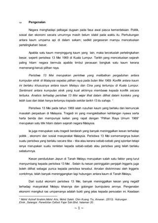 14 Hubungkait Antara Ekonomi Etnisiti 11. Latar Belakang 11 Pengenalan Peristiwa 13 Mei 1969 merupakan satu titik hitam yang telah. 4 Pengenalan Malaysia ialah negara yang amat masyhur di mata dunia kerana negara kita terdiri daripada pelbagai kaum dan etnik yang berbeza dengan identiti budaya tersendiri.