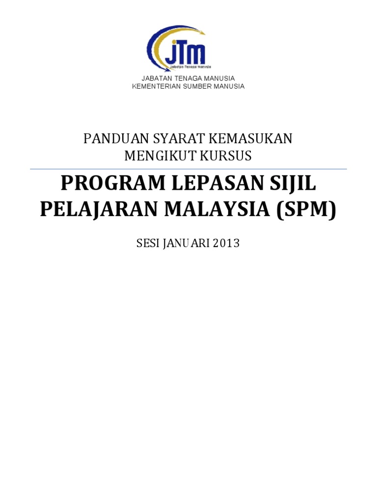 Panduan Syarat Kemasukan Mengikut Kursus Lepasan Spm Pdf
